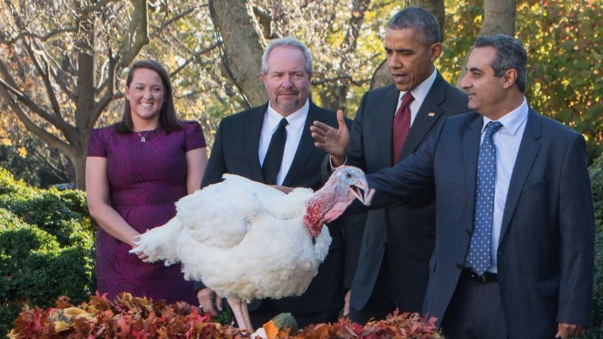 "Algunos encuentran que esta tradición es un poco absurda... Yo también, pero aprecio la oportunidad de desear un feliz Thanksgiving " a todo Estados Unidos, agregó.