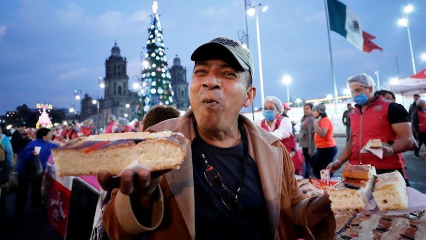 Con una rosca de 1.440 metros y más de 9 toneladas de peso, la Ciudad de México celebró el Día de Reyes en el Zócalo capitalino y, por primera vez, se elaboró una rosca destinada a las personas que padecen de diabetes.