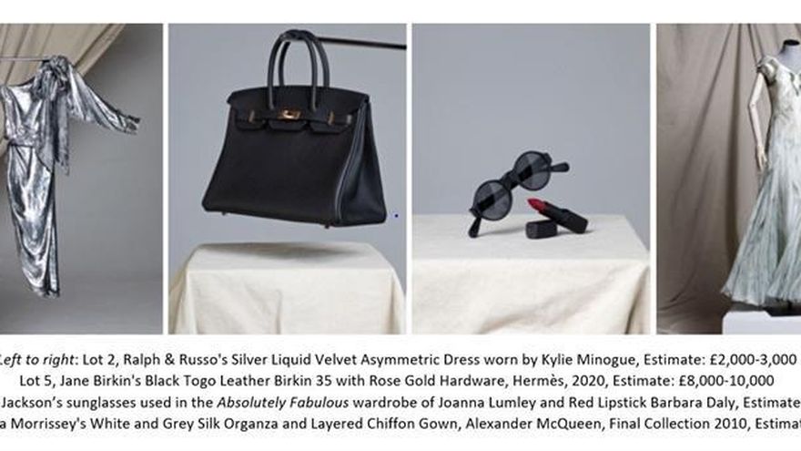 Desde el icónico bolso Togo de cuero negro Hermés Birkin 35 de Jane Birkin (estimado en 8.000-10-000 libras/8.900-11.130 euros/10.476-13.000 dólares), el mono vintage que Kate Moss lució en el 150 aniversario de Moët Imperial (estimado en 500-800 libras/654-1.048 dólares/557-890 euros), al vestido asimétrico en tonalidades plateadas que Kylie Minogue llevó en la Royal Academy Summer Party en 2019 (estimado en 2.000-3.000 libras/2.225-3.338 euros/2.617-3.926 dólares) están ya a la venta desde la página web de Christie’s.
