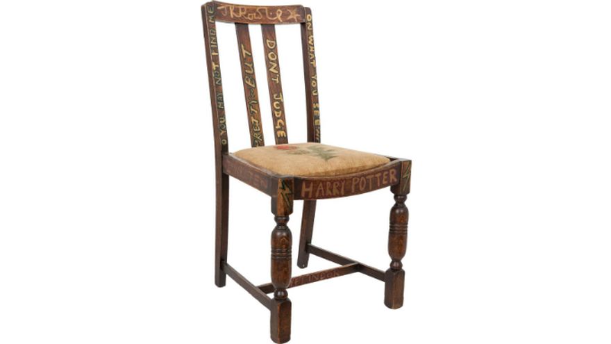 Según la casa de subastas Heritage Auctions, que conduce la venta, la autora donó la silla en 2002, a beneficio de una asociación que lucha contra la violencia infantil.