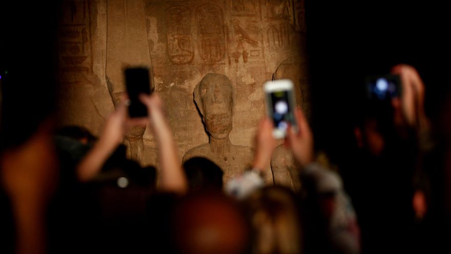 Desde China, Nueva Zelanda, Canadá o España turistas y curiosos desembarcaron en la pequeña localidad de Abu Simbel, en el extremo sur de Egipto, para presenciar un fenómeno que sólo pasa dos veces al año, el 22 de octubre y el 22 de febrero, fechas que a los egiptólogos les gusta creer que coinciden con el cumpleaños y la coronación del faraón.