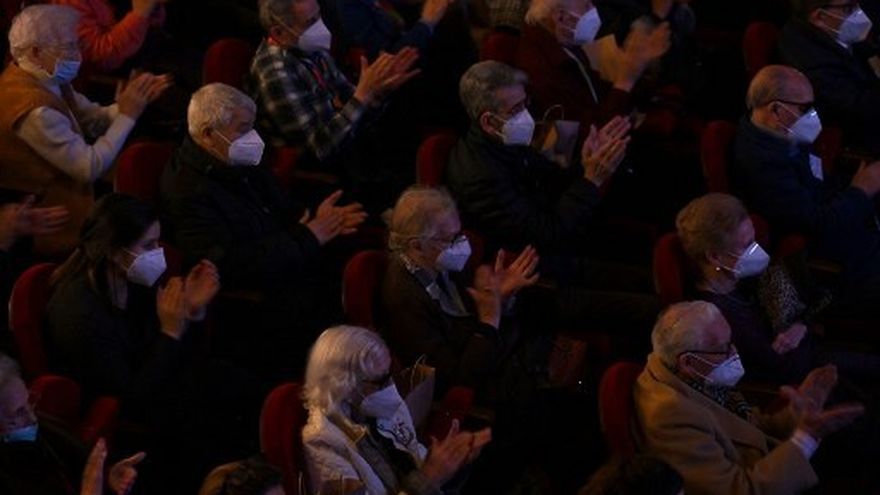 Es su primera salida en un año. Un centenar de ancianos de varias residencias en Madrid, recién vacunados, asistieron al teatro este miércoles, una experiencia emocionante para estos pioneros de la inmunización.