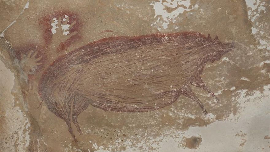 La pintura rupestre figurativa más antigua del mundo es la imagen de un cerdo verrugoso pintada hace 45,500 años en una cueva de la isla indonesia de Célebes y descubierta por un grupo de arqueólogos australianos e indonesios, según informaron este jueves fuentes científicas.