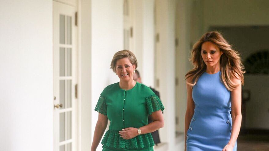 La primera dama Lorena Castillo de Varela y su homóloga estadounidense Melania Trump, robaron la atención del encuentro que mantuvieron sus esposos este lunes en Washington D.C., por sus coloridos y elegantes atuendos.