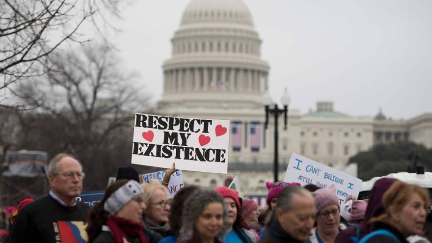 Las búsquedas aumentaron, por ejemplo, después de la Marcha de las Mujeres en Washington y otras ciudades estadounidenses el 21 de enero, el día después de que Trump tomara posesión como presidente, informó el martes el diccionario.