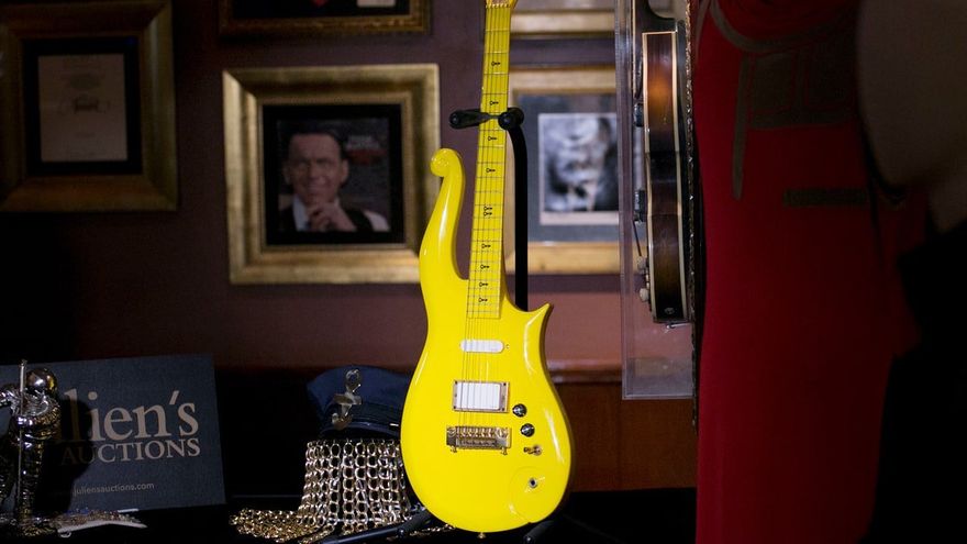 La guitarra amarilla "Cloud" (Nube), llamada así por su cuerpo retorcido único, también tiene los símbolos de amor de Prince grabados entre los trastes, y había sido valorada antes de la subasta entre 60.000 y 80.000 dólares, aseguró Julien.