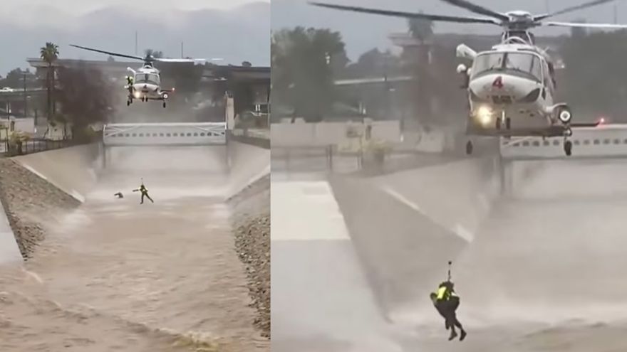 Más tarde, los Bomberos de Los Ángeles publicaron el video del impresionante rescate al hombre que se había lanzado al Río Los Ángeles a salvar a su perro de los rápidos.