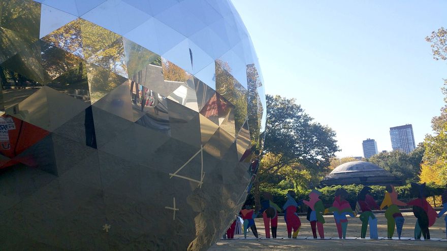 Una simbólica escultura que consta de una esfera de espejos y una cadena con figuras humanas, del artista español Cristóbal Gabarrón, quedó instalada hoy en el corazón de Central Park para recordar los 70 años de la creación de la ONU.