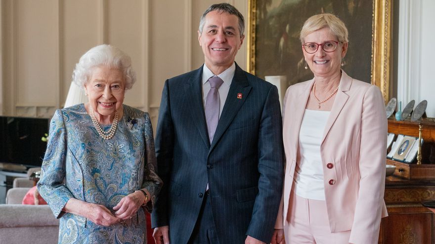 La monarca, que festejó su cumpleaños 96 la semana pasada en privado, posó para los fotógrafos con el presidente Ignazi Cassis y su mujer, en el castillo de Windsor, situado a unos 40 kilómetros de Londres, donde vive desde la pandemia.