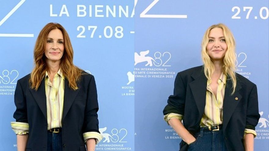 Lo que Julia y su equipo no sabían es que este conjunto no solo causaría sensación en la crítica, sino que también enamoraría a otra de las grandes figuras de Hollywood. El lunes siguiente, todos los ojos se posaron en Amanda Seyfried, quien pisaba la misma alfombra roja con un estilo inconfundiblemente familiar. Para sorpresa de muchos, la actriz de Mamma Mia! lucía exactamente el mismo traje de chaqueta, jeans y camisa a rayas que Roberts había usado días antes. La coincidencia no era una simple casualidad.