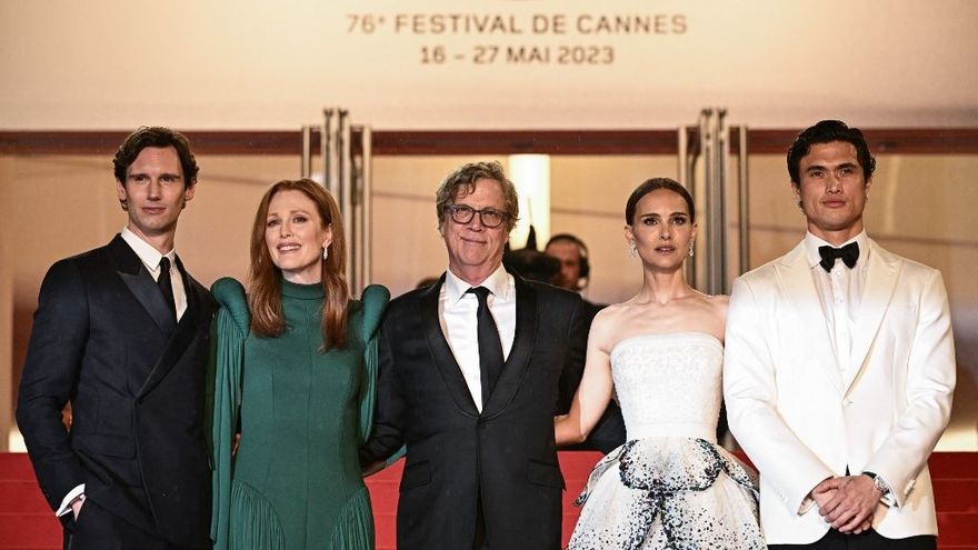 Cannes, Francia/Las actrices estadounidenses Julianne Moore y Natalie Portman juegan al escondite en la película "May December", dirigida por Todd Haynes, que entró en competición en el 76º Festival de Cannes.