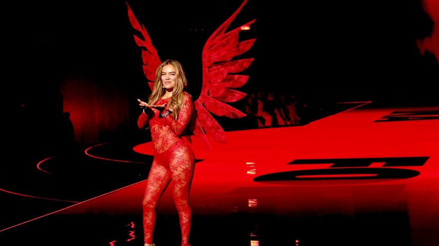 El momento cumbre de su actuación llegó cuando la artista apareció en la pasarela vestida completamente de rojo. El atuendo, compuesto por un body de lencería y botas altas a tono, se complementó con unas enormes y dramáticas alas, emulando a los legendarios ángeles que han definido la marca a lo largo de los años.