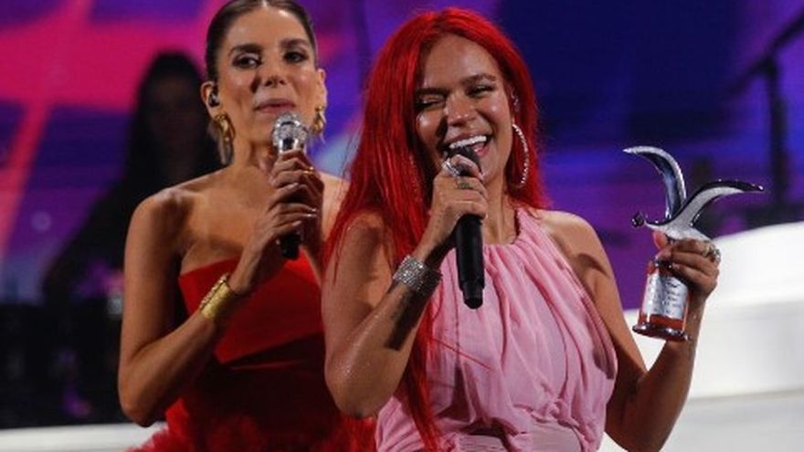 Tras más de media hora de presentación, los presentadores del evento María Luisa Godoy y Martín Cárcamo, interrumpieron la presentación para entregar a Karol G el primer premio de la noche, el galardón de la Gaviota de Plata.