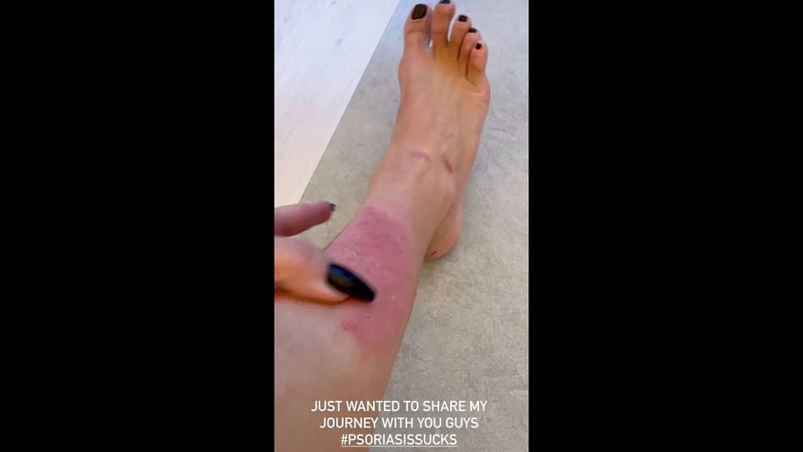 “Qué loca es mi psoriasis en este momento, chicos”, dijo mientras se acercaba a una gran mancha roja en su pantorrilla. "Es como si me subiera por toda la pierna y no sé qué está pasando, pero tengo que resolverlo... esto es una locura".