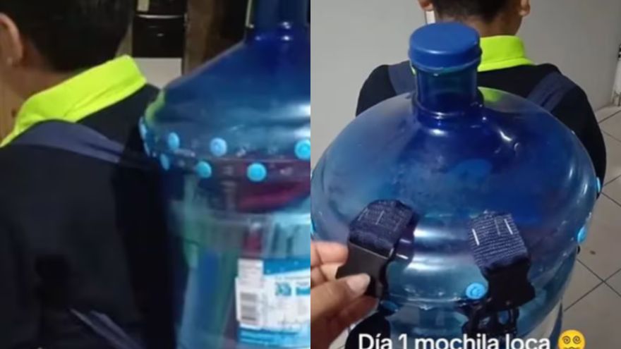 @joanalara451 explicó cómo fue el proceso de construcción de la “mochila loca” de su hijito, en el que tomó un garrafón de agua desocupado y lo cortó a la mitad, utilizando la parte más grande como base y la más pequeña como tapa. Luego ajustó a ambas partes unos broches para que pudiera abrirse y cerrarse fácilmente.
