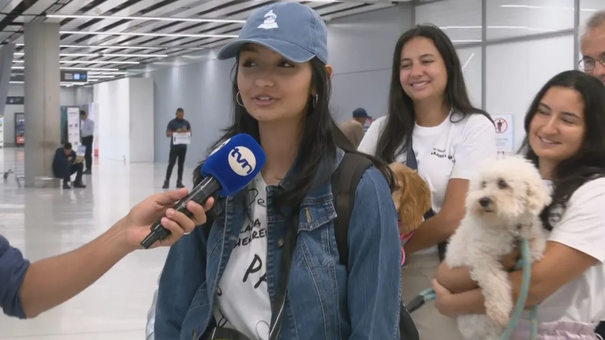 En el aeropuerto la esperaba su familia, incluso su mascota.
