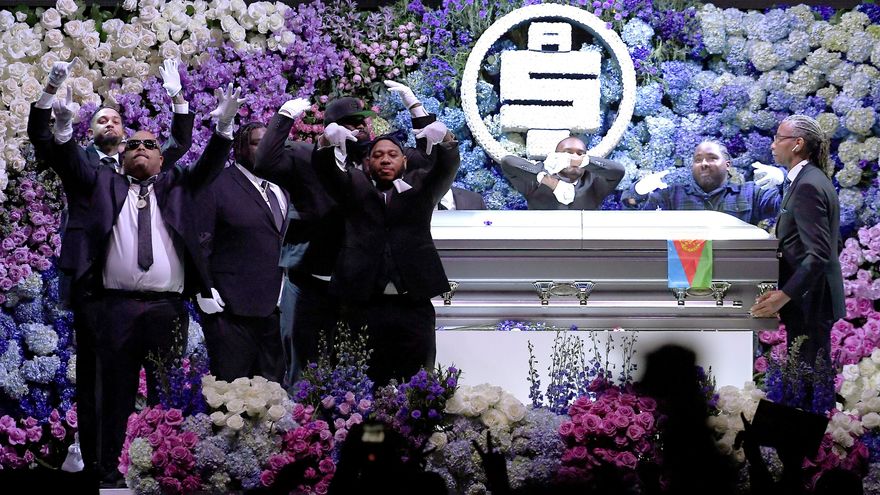 Posteriormente, el cuerpo del rapero, en un coche decorado con banderas de Eritrea (el país de su ascendencia), dejó el centro de la ciudad, donde está el Staples Center, para recorrer las calles de South Los Ángeles, una zona conocida por su pobreza y violencia y en donde creció el artista.