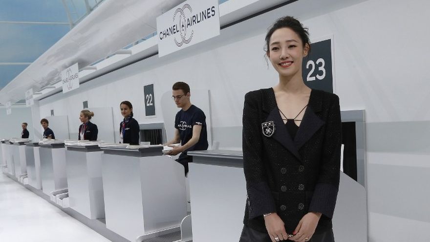 Llegó la hora de embarcar con "Chanel Airlines": un impactante decorado de terminal aérea permitió a Karl Lagerfeld presentar este martes su colección primavera-verano 2016, sin prever que en París su desfile coincidiría con un violento conflicto social en el sector del transporte aéreo.
