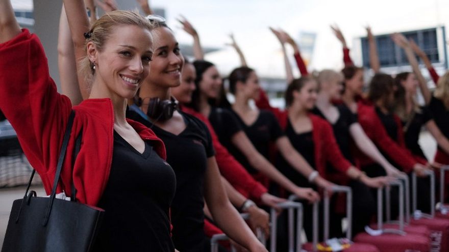 Vestidas con conjunto negro y con valijas rojas con el nombre del cabaret parisino, 16 bailarinas y un bailarín desembarcaron en la Gran Manzana con 1,5 toneladas de vestuario.