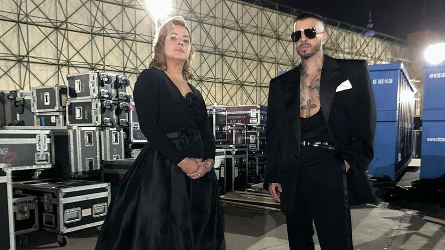 María Nelly Ruiz y Rauw Alejandro deslumbraron con su paso en la alfombra. Ambos fueron vestidos muy elegantes y en conjunto. Rauw optó por un traje negro liso, con una estilizada chaqueta con hombreras, muy ochentera, y una camiseta negra escotada que que dejó ver los tatuajes del torso. Su madre optó por un vestido de falda ancha en colo negro, Adorando con tres sencillas rosas negras en el centro del torno y acompañado por una chaqueta larga tipo traje. En cuanto a los accesorios no lleva ningún tipo de bolso y lució unos zapatos de tacón bajo negros sobrios.
