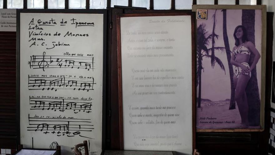 Aunque raramente componían en los bares, las mesas se convirtieron en una insaciable fuente de inspiración. Fue en una de ellas, en la antigua calle Montenegro de Río de Janeiro, donde Vinicius y Tom vieron pasar camino del mar una bonita joven de ojos verdes y cabello negro.