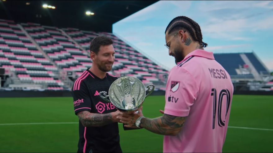 En el video se puede ver a Maluma ingresando al terreno de juego del DRV PNK Stadium con la camiseta del 10, donde el Inter Miami hace de local, y segundos después es el propio Messi quien aparece para entregarle un trofeo al cantante colombiano.