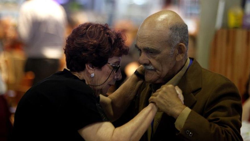 Foto de archivo de una pareja baila tango en Montevideo (Uruguay).