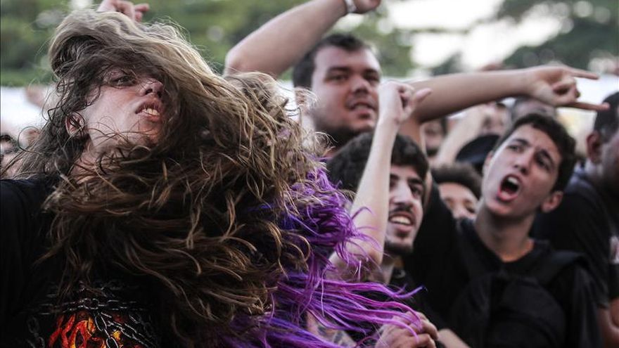 Los auténticos rockeros, con pelos largos, camisetas negras y con muchas ganas de disfrutar de las variantes más duras y poderosas de esta música invadieron hoy la segunda jornada de la edición brasileña del festival Rock in Río.