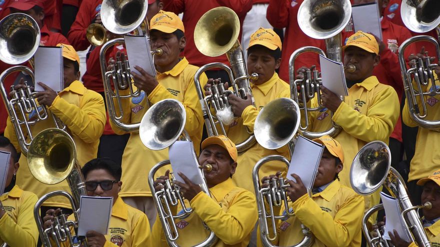 Uniformados con camisetas rojas, amarillas y verdes para formar la bandera boliviana, los músicos se instalaron en la Plaza Cívica de la ciudad de Oruro (oeste), cerca del Santuario de la Virgen del Socavón, para participar en el XVII Festival de Bandas de Oruro, uno de los principales eventos previos al carnaval.