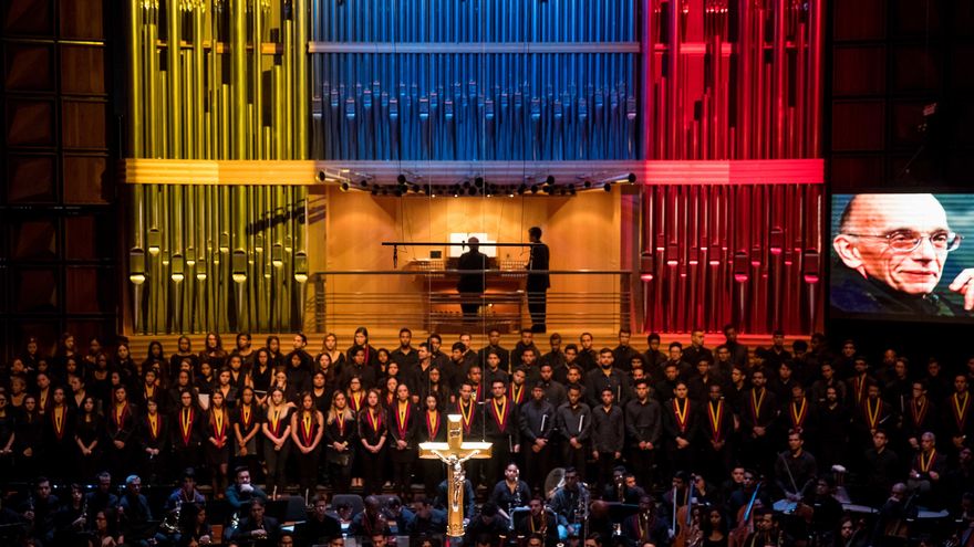 El tributo comenzó a reunir desde la mañana a los varios cientos de músicos que forman parte del quijotesco proyecto de Abreu que acudieron a expresar su pesar por la partida del hombre que dedicó su vida a combatir la desigualdad y la pobreza con música.