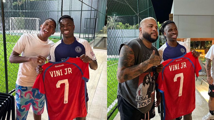 ¡Con la roja! En la foto con Vinícius Jr se le puede ver con la camiseta de la selección de Panamá con el número 7 y el nombre “Vini jr”, un regalo que le hizo ‘Chino’, uno de los managers de Dimelo Flow por su cumpleaños.