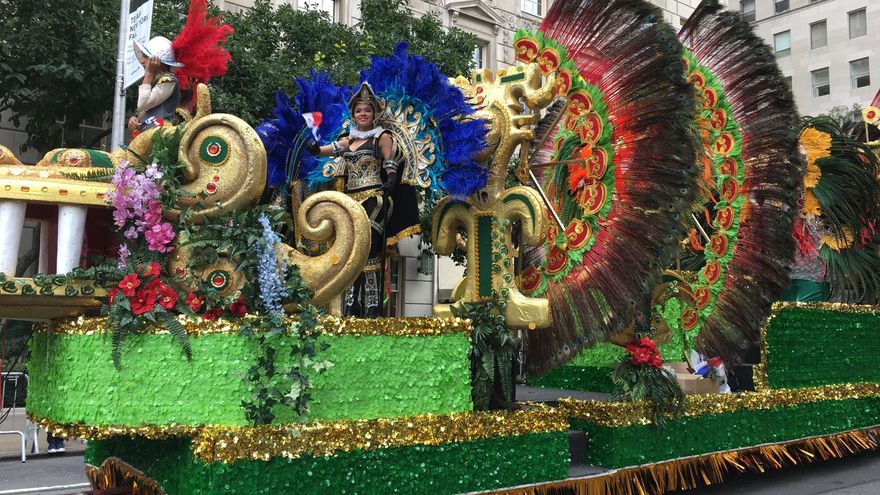 Varias reinas del carnaval panameño, en lucidos carros alegóricos, engalanaron las calles de Nueva York en compañía de miembros del Conjunto Proyecciones Folklóricas, quienes hicieron bailar a los presentes.