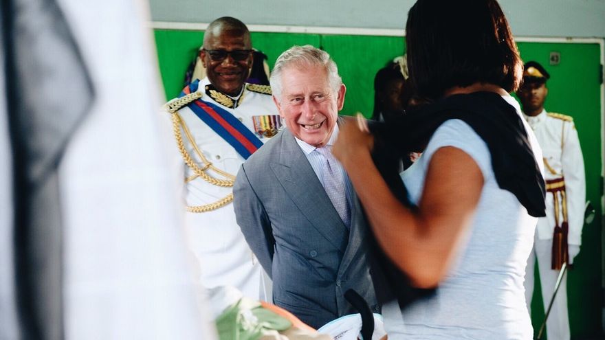 Tras llegar a la isla, a bordo de un vuelo comercial de British Airways, el heredero del trono británico fue recibido por el gobernador general, Sir Rodney Williams, y su mujer, Lady Williams, así como por el primer ministro, Gaston Browne, y su esposa, María.