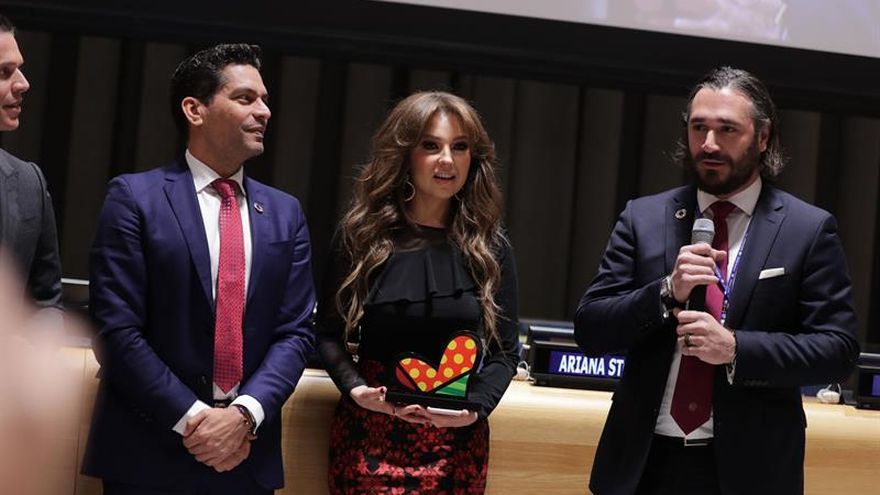 Thalía recibió hoy un premio por su labor humanitaria durante un acto celebrado en la sede de la ONU, en el que la cantante mexicana llamó a la comunidad latina a ser un puente para la unidad, de aceptación, que promueva la tolerancia, el apoyo a la niñez y a su educación.