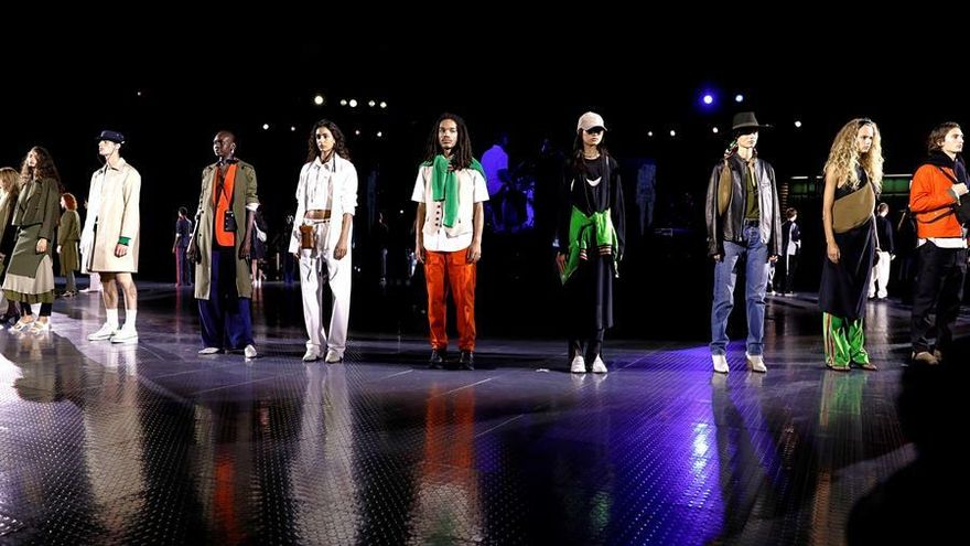 El estadounidense Jeremy Scott hizo de su desfile una fiesta de disfraces futurista, como viene siendo habitual, y mezcló estilos de la cabeza a los pies: pelucas neón de estilo "punk", estampados animales o de fantasía con palmeras o momias surferas, y acabados brillantes.