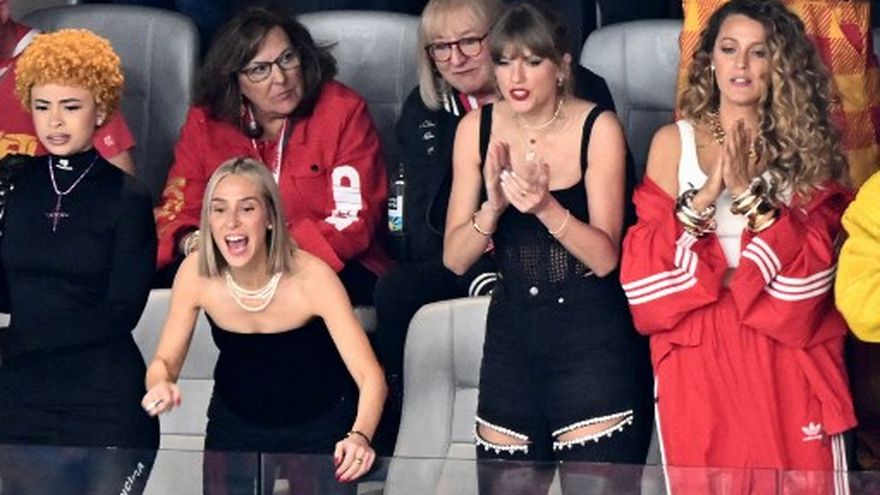 Las Vegas/Acompañada de una colección de famosos, la superestrella del pop Taylor Swift animaba el domingo a su pareja Travis Kelce y sus Kansas City Chiefs en el Super Bowl de la NFL en Las Vegas.
