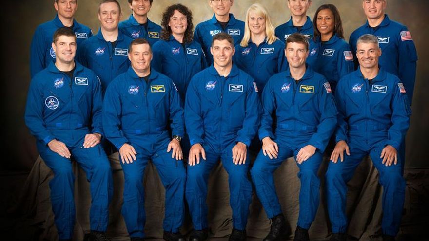 Fotografía oficial de la NASA cedida y tomada el 30 de septiembre de 2009, en donde aparecen posando en el Centro Espacial Johnson de la NASA los 14 astronautas de la NASA, la Agencia de Exploración Aeroespacial de Japón (JAXA) y la Agencia Espacial Canadiense. Serena Auñón-Chancellor es la segunda de la izquierda en la segunda fila. / EFE