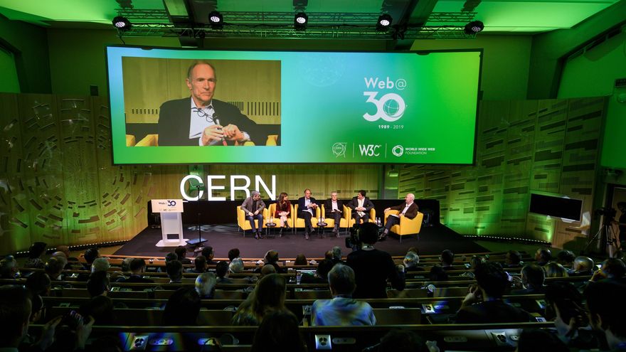 Tim Berner-Lee, inventor del protocolo que permitió el uso y la expansión de internet cuando trabajaba en el Centro Europeo de Física de Partículas (CERN), lo reconoció hoy en el acto de conmemoración de los treinta años cumplidos desde que hiciera circular entre sus colegas un documento en el que se basó la creación de la red mundial.