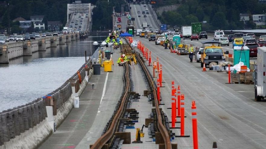 Portland/La ciudad de Seattle avanza en la construcción sobre el lago Washington del que será en 2023 el "primer" tren sobre un puente flotante, en medio de los carriles para vehículos del viaducto Homer M. Hadley Memorial y con el gran reto hacerlo muy liviano y evitar el contacto eléctrico con el agua.
