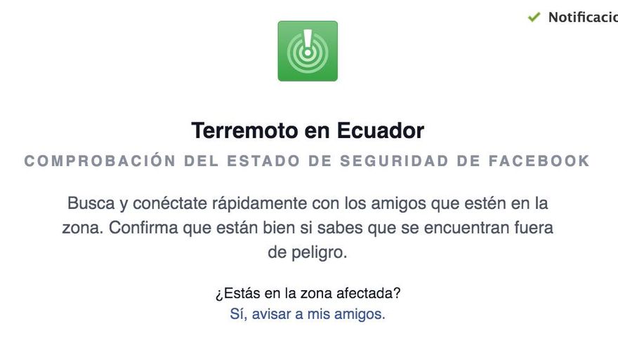 Después del sismo de 7,6 grados en la escala de Richter registrado la noche del sábado 17 de abril en Ecuador, Facebook activó su aplicación Security Check.