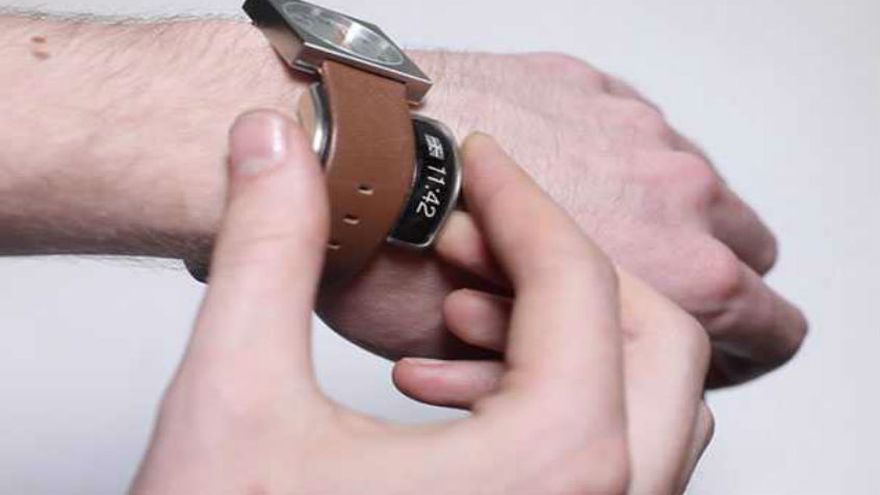 La promesa del dispositivo es simple: Permite convertir cualquier reloj en un smartwatch, juntando un grupo importante de funciones en un pequeño cuadrado metálico que se pone bajo la correa del reloj.