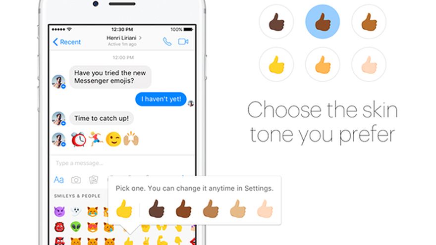 No sólo sumaron la posibilidad de escoger entre los tonos de piel de las manos, sino también incluyeron personajes femeninos en roles como la policía. Este cambio ya se había hecho presente en la versión de emoji de iOS, mientras que Android anunció el cambio para los próximos meses. Los nuevo iconos fueron lanzados con el hashtag "#MessengerEmoji" para que Facebook pueda recibir las impresiones de sus usuarios.