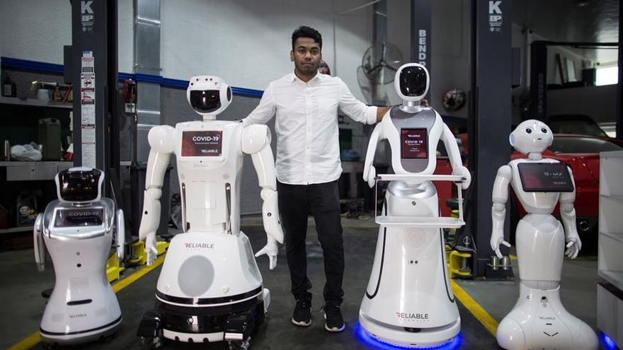 Según explicó a Efe el director de Robótica e Inteligencia Artificial de Reliable Robotics, Aswin Sarang, agarraron cuatro de los robots que tenían preparados, cambiaron el software y los reconvirtieron en algo nuevo y necesario en un país con casi 35.000 casos de COVID-19 y cerca de 300 muertos.