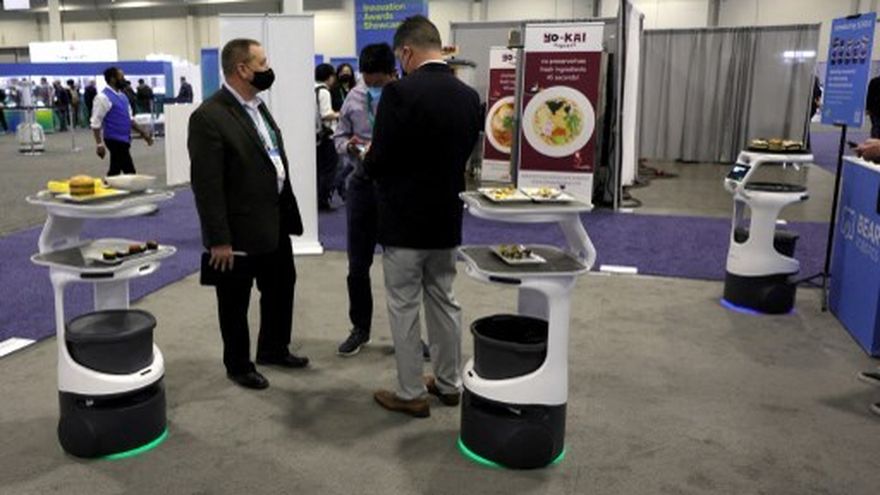 Algunos puestos más lejos, un robot humanoide nombrado Ameca recibió una acogida menos temerosa por parte de espectadores curiosos que lo observaron hablar y mostrar una amplitud de movimientos similar a la de los humanos.