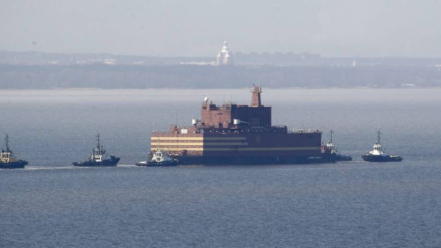 Este bloque flotante masivo, de 144 metros de largo y 30 metros de ancho, construido por el conglomerado público ruso Rosatom, tiene dos reactores con una capacidad de 35 MW cada uno (frente a los más de 1.000 MW de los reactores de nueva generación), similares a los utilizados en los rompehielos.