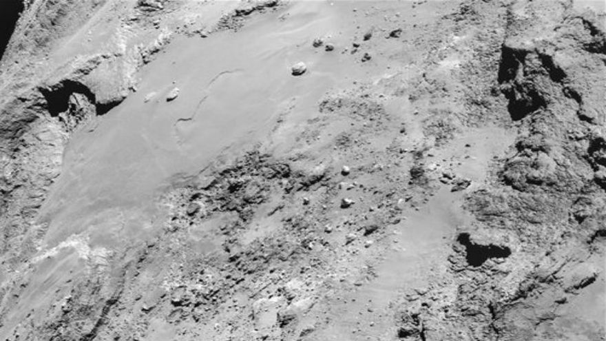 Las imágenes tomadas por la sonda espacial Rosetta en un vuelo bajo en torno a un cometa al que lleva meses siguiendo muestran rocas sobre la superficie del cometa, así como "impactantes detalles del terreno en contraste", indicó el lunes la Agencia Espacial Europea (ESA).