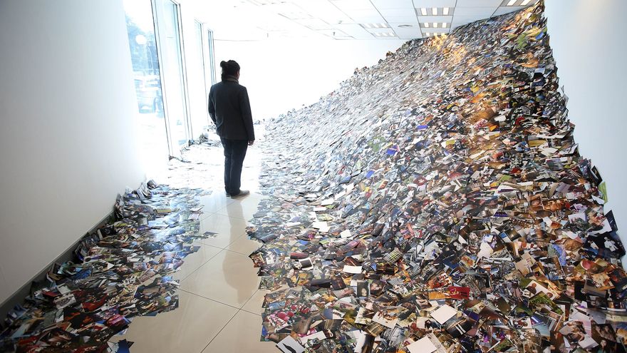 Asimismo, una de las postales que más destaca es una sala con miles de fotografías, que representan la cantidad de fotos que se sube cada día a la plataforma virtual para compartir imágenes, Flickr.