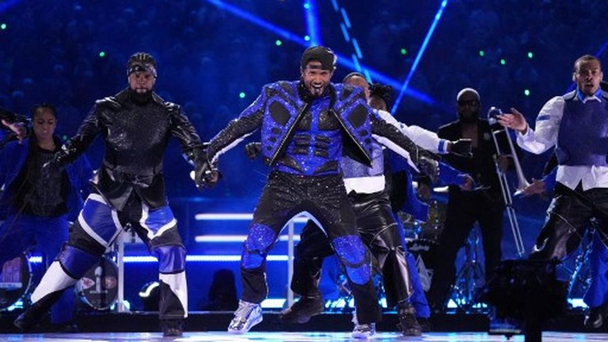 Show de Usher en el mediotiempo del Super Bowl.