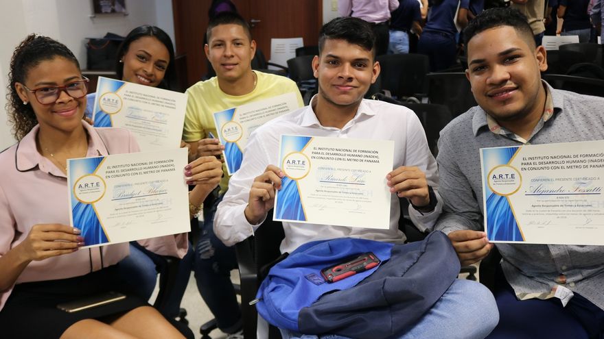 En total, 57 jóvenes entre hombres y mujeres fueron capacitados por técnicos del Metro de Panamá S. A. e instructores del Instituto Nacional de Formación Profesional y Capacitación para el Desarrollo Humano (Inadeh) como agentes responsables de trenes y estaciones gracias a la alianza estratégica que ambas entidades iniciaron en febrero pasado.