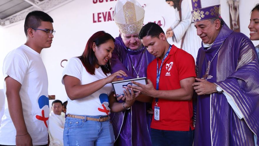 Con un acto simbólico en la Basílica Menor de Atalaya, jóvenes y obispos de diferentes diócesis se inscriben como peregrinos de la Jornada Mundial de Juventud (JMJ), que se realizará en Panamá en 2019.